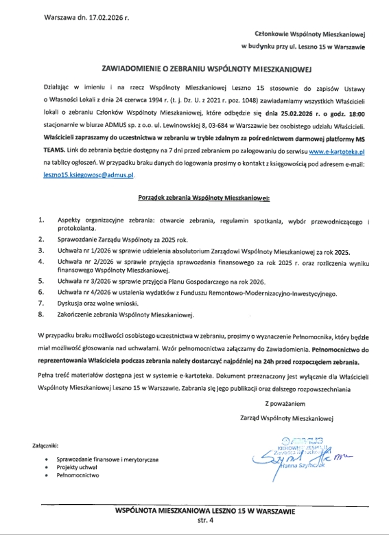 Na Państwa adresy e-mail zastał wysłany biuletyn informacyjny z życia Wspólnoty Mieszkaniowej Leszno 15. Zachęcamy do zapoznania się z jego treścią.
