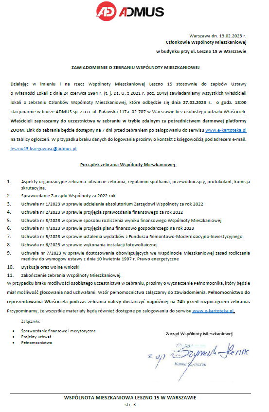 Uprzejmie informujemy, iż w dniach od 14.03.2023 – 16.03.2023 r. w godzinach od 9.00 do 15.00 odbędzie się maszynowe mycie posadzki wraz z ręcznym myciem miejsc trudnodostępnych , oraz etapowe doczyszczanie w Państwa garażu wg. harmonogramu: